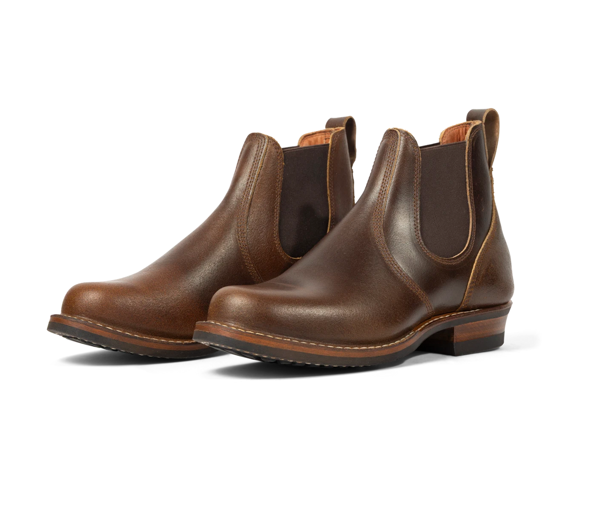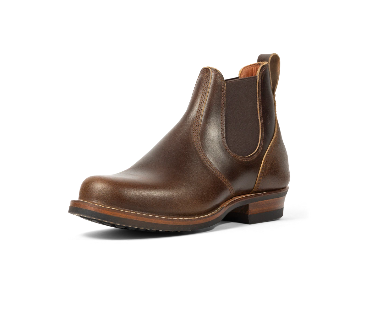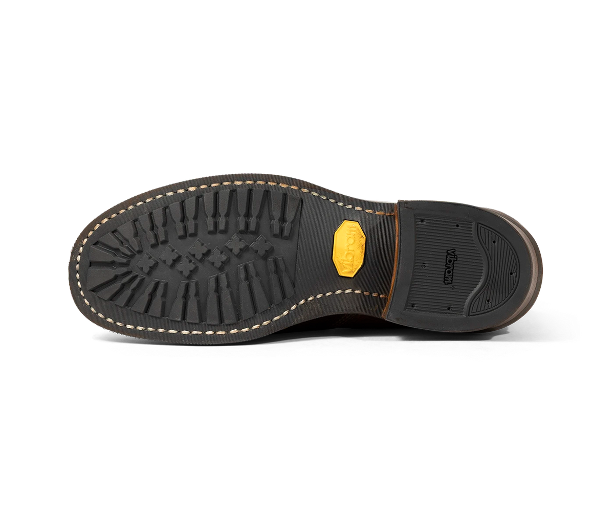 Our stitchdown construction type offers a more secure fit and feel than a Goodyear Welted boot, but takes much less time to manufacture than our true hand-sewn stitchdowns. Still hand-lasted and hand-bottomed, the liner of our stitchdown boots is glued down to the bottom of the insole. Then the vamp is turned out, and the midsole and bottom are machine-stitched together through the vamp. Removing the hand-welting process shortens the production time significantly, allowing us to offer a rugged, comfortable boot without the high price of a truly hand-sewn boot.