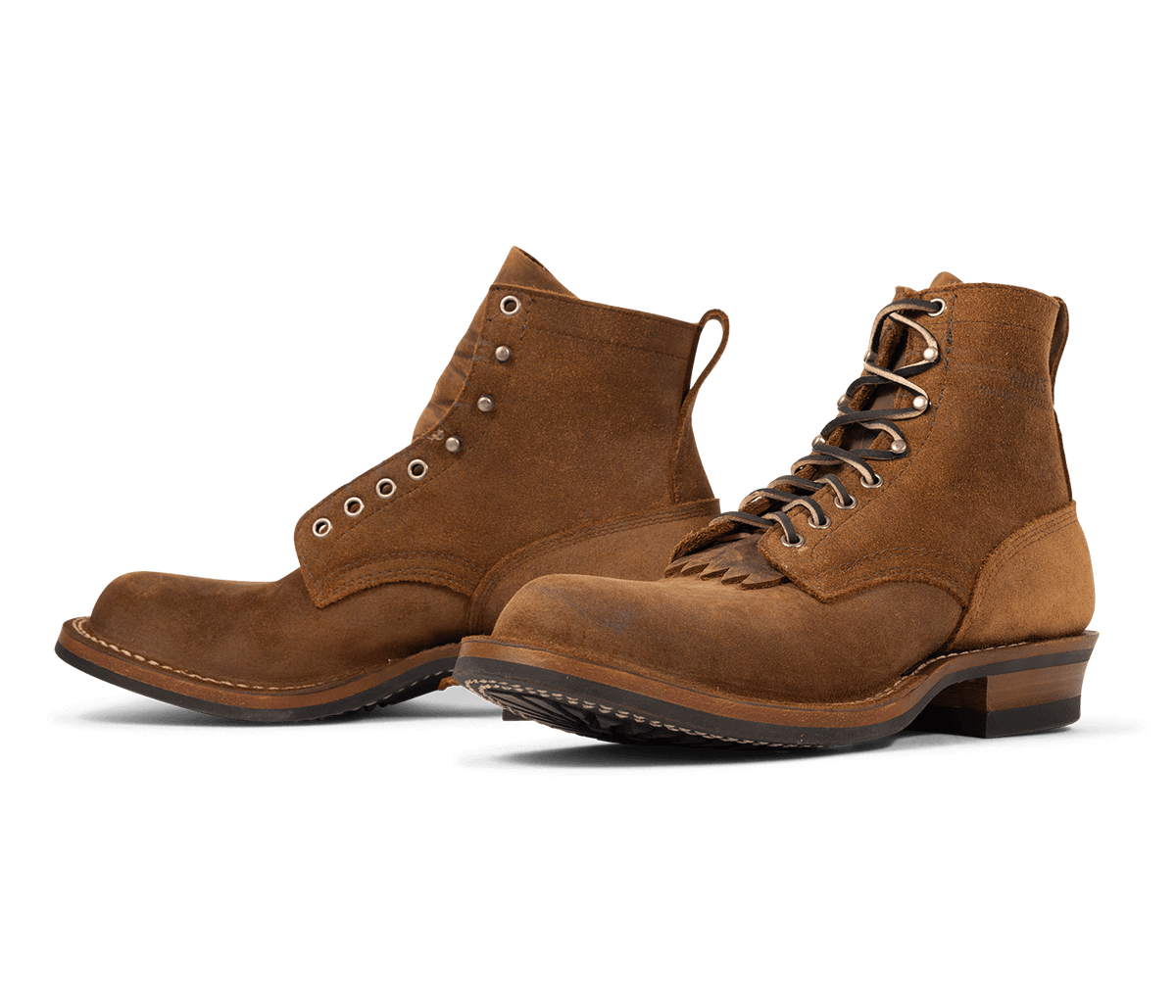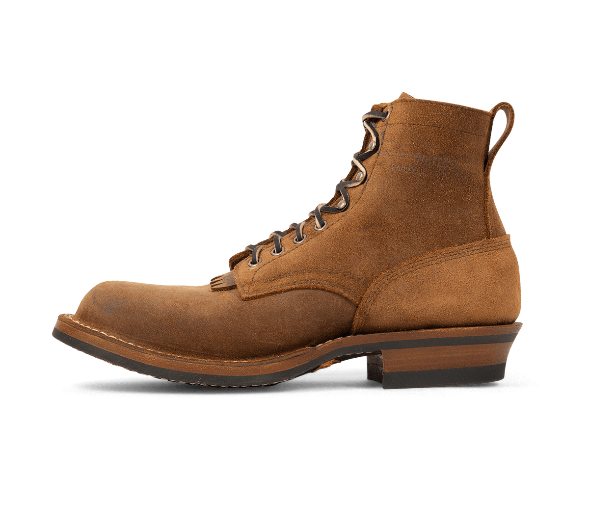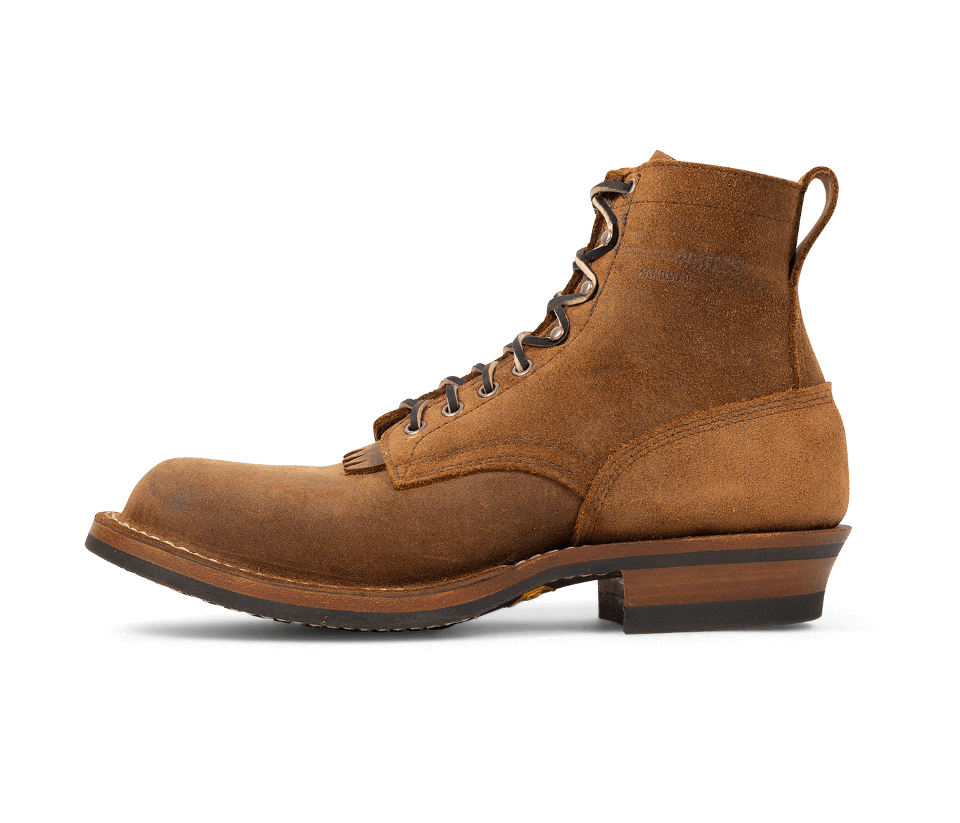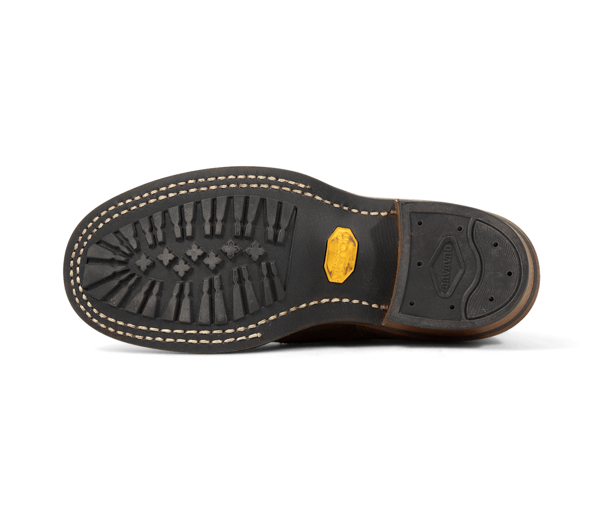 Our stitchdown construction type offers a more secure fit and feel than a Goodyear Welted boot, but takes much less time to manufacture than our true hand-sewn stitchdowns. Still hand-lasted and hand-bottomed, the liner of our stitchdown boots is glued down to the bottom of the insole. Then the vamp is turned out, and the midsole and bottom are machine-stitched together through the vamp. Removing the hand-welting process shortens the production time significantly, allowing us to offer a rugged, comfortable boot without the high price of a truly hand-sewn boot.
