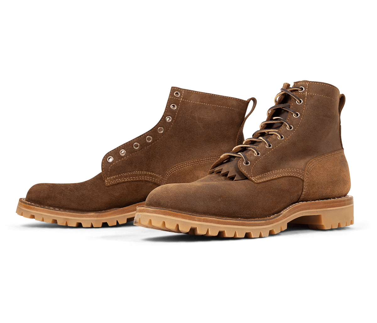 Our stitchdown construction type offers a more secure fit and feel than a Goodyear Welted boot, but takes much less time to manufacture than our true hand-sewn stitchdowns. Still hand-lasted and hand-bottomed, the liner of our stitchdown boots is glued down to the bottom of the insole. Then the vamp is turned out, and the midsole and bottom are machine-stitched together through the vamp. Removing the hand-welting process shortens the production time significantly, allowing us to offer a rugged, comfortable boot without the high price of a truly hand-sewn boot.