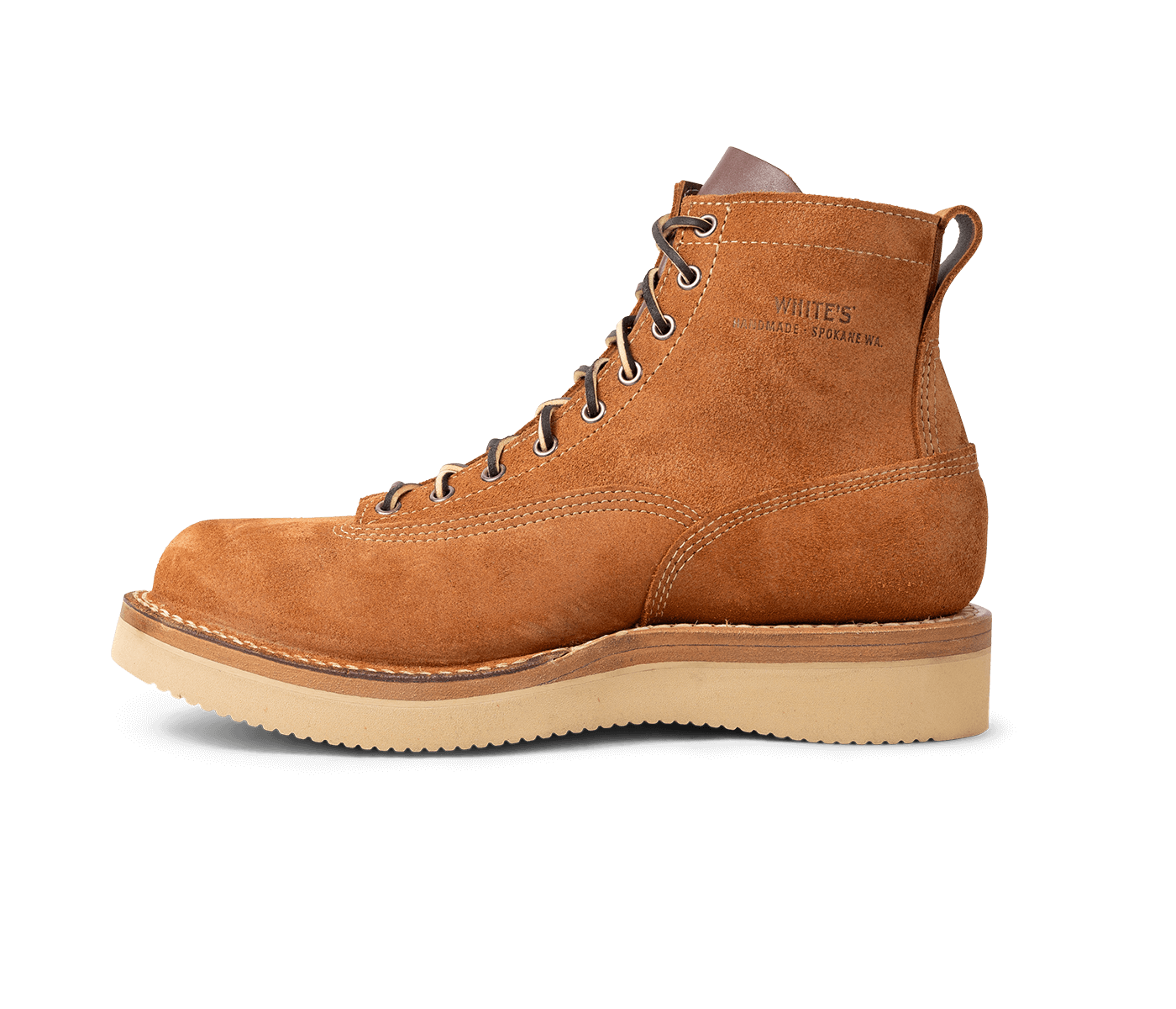 Our stitchdown construction type offers a more secure fit and feel than a Goodyear Welted boot, but takes much less time to manufacture than our true hand-sewn stitchdowns. Still hand-lasted and hand-bottomed, the liner of our stitchdown boots is glued down to the bottom of the insole. Then the vamp is turned out, and the midsole and bottom are machine-stitched together through the vamp. Removing the hand-welting process shortens the production time significantly, allowing us to offer a rugged, comfortable boot without the high price of a truly hand-sewn boot.