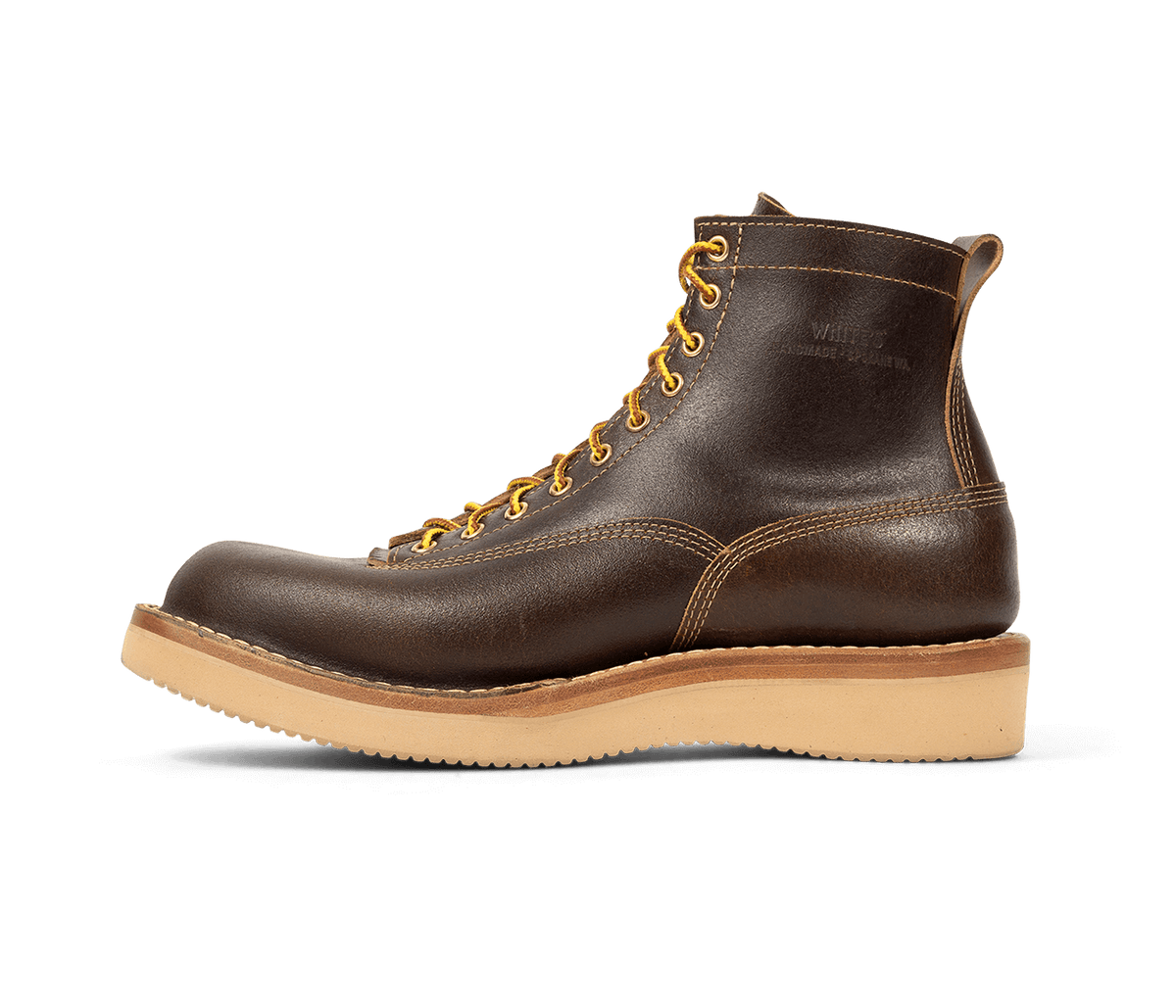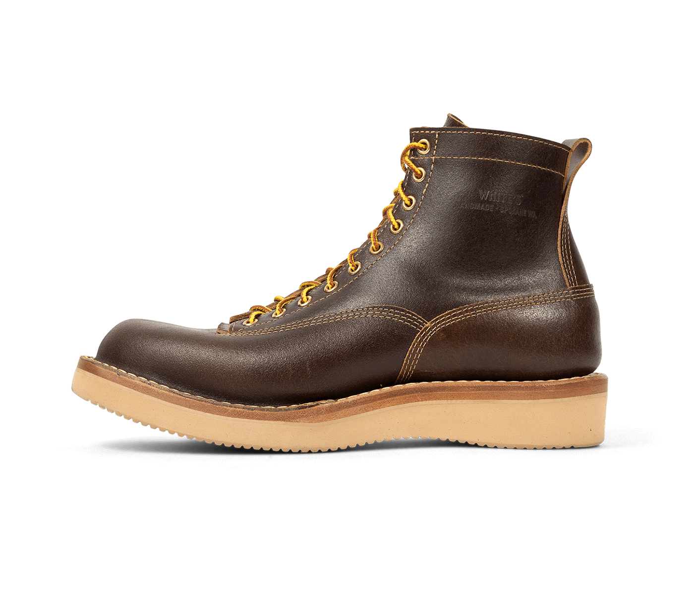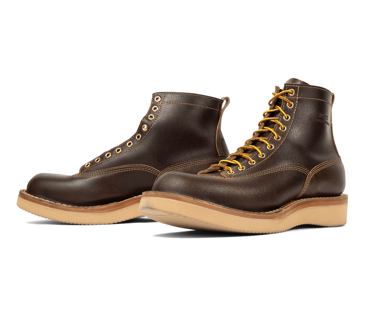 Our stitchdown construction type offers a more secure fit and feel than a Goodyear Welted boot, but takes much less time to manufacture than our true hand-sewn stitchdowns. Still hand-lasted and hand-bottomed, the liner of our stitchdown boots is glued down to the bottom of the insole. Then the vamp is turned out, and the midsole and bottom are machine-stitched together through the vamp. Removing the hand-welting process shortens the production time significantly, allowing us to offer a rugged, comfortable boot without the high price of a truly hand-sewn boot.