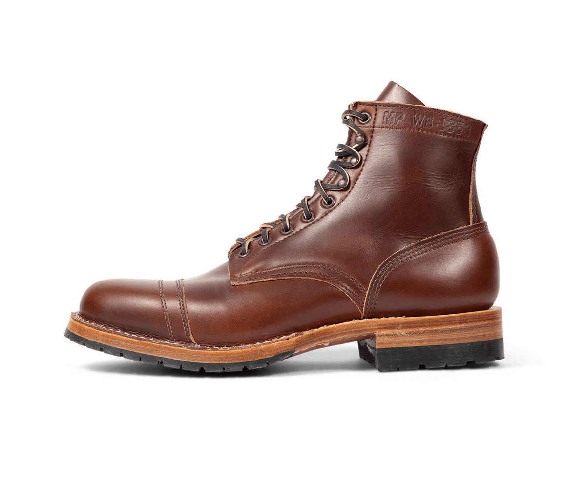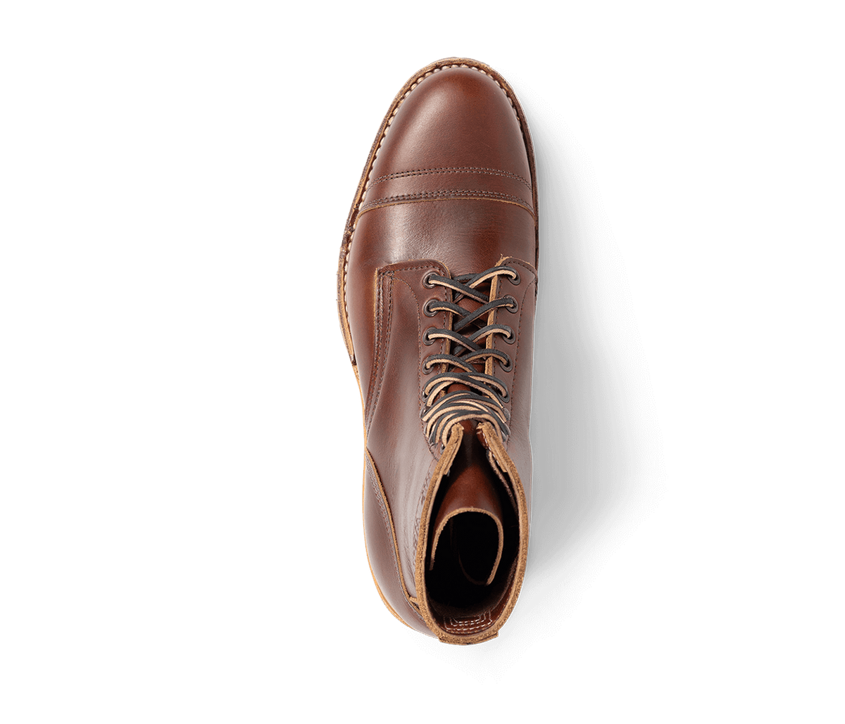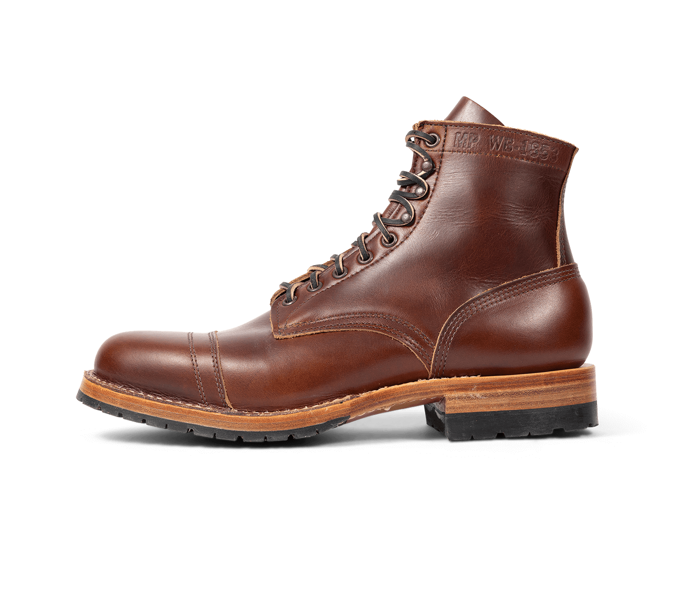 Our stitchdown construction type offers a more secure fit and feel than a Goodyear Welted boot, but takes much less time to manufacture than our true hand-sewn stitchdowns. Still hand-lasted and hand-bottomed, the liner of our stitchdown boots is glued down to the bottom of the insole. Then the vamp is turned out, and the midsole and bottom are machine-stitched together through the vamp. Removing the hand-welting process shortens the production time significantly, allowing us to offer a rugged, comfortable boot without the high price of a truly hand-sewn boot.