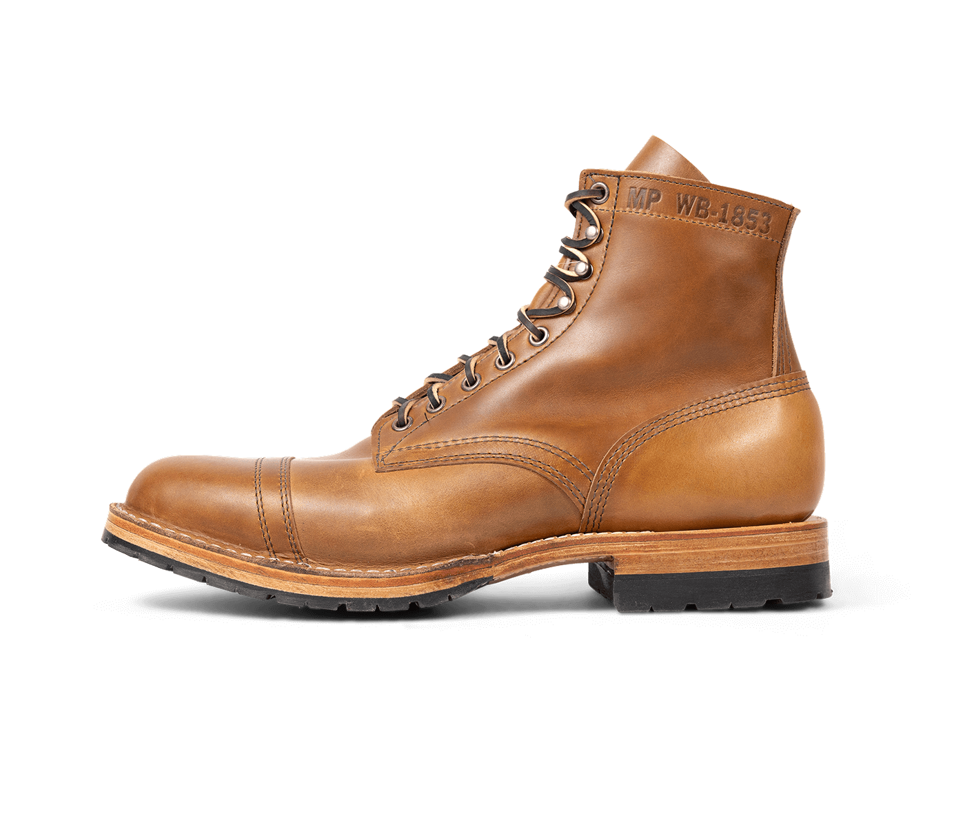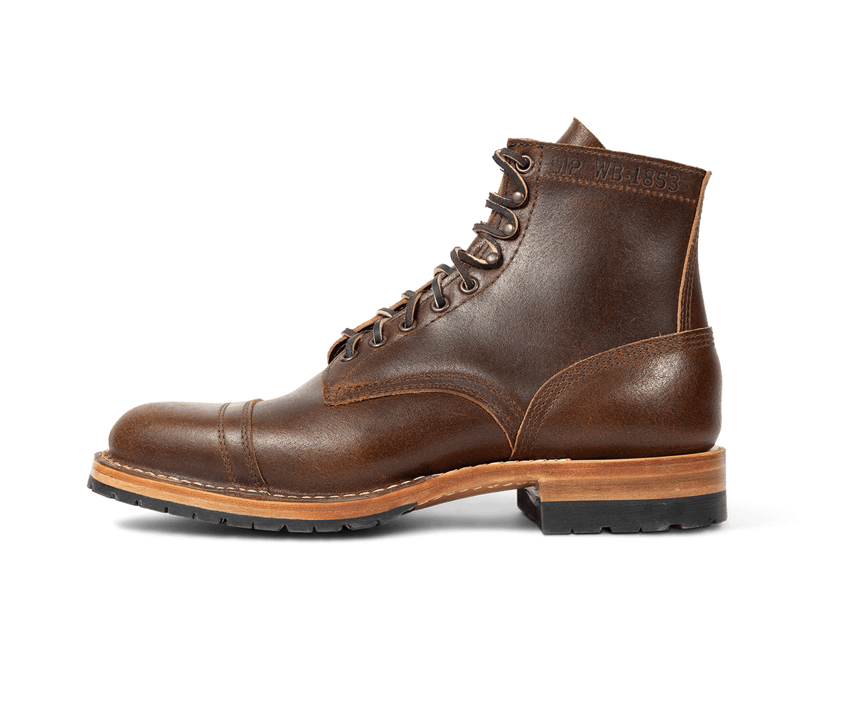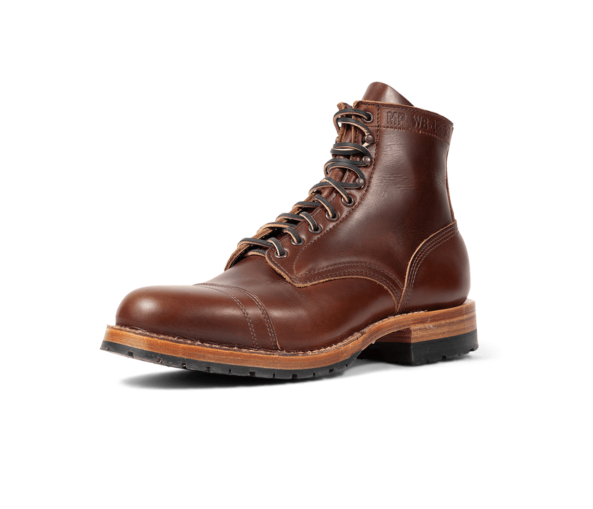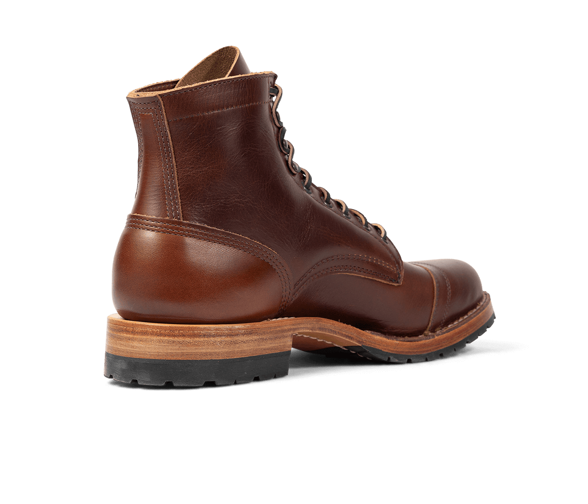 Our stitchdown construction type offers a more secure fit and feel than a Goodyear Welted boot, but takes much less time to manufacture than our true hand-sewn stitchdowns. Still hand-lasted and hand-bottomed, the liner of our stitchdown boots is glued down to the bottom of the insole. Then the vamp is turned out, and the midsole and bottom are machine-stitched together through the vamp. Removing the hand-welting process shortens the production time significantly, allowing us to offer a rugged, comfortable boot without the high price of a truly hand-sewn boot.