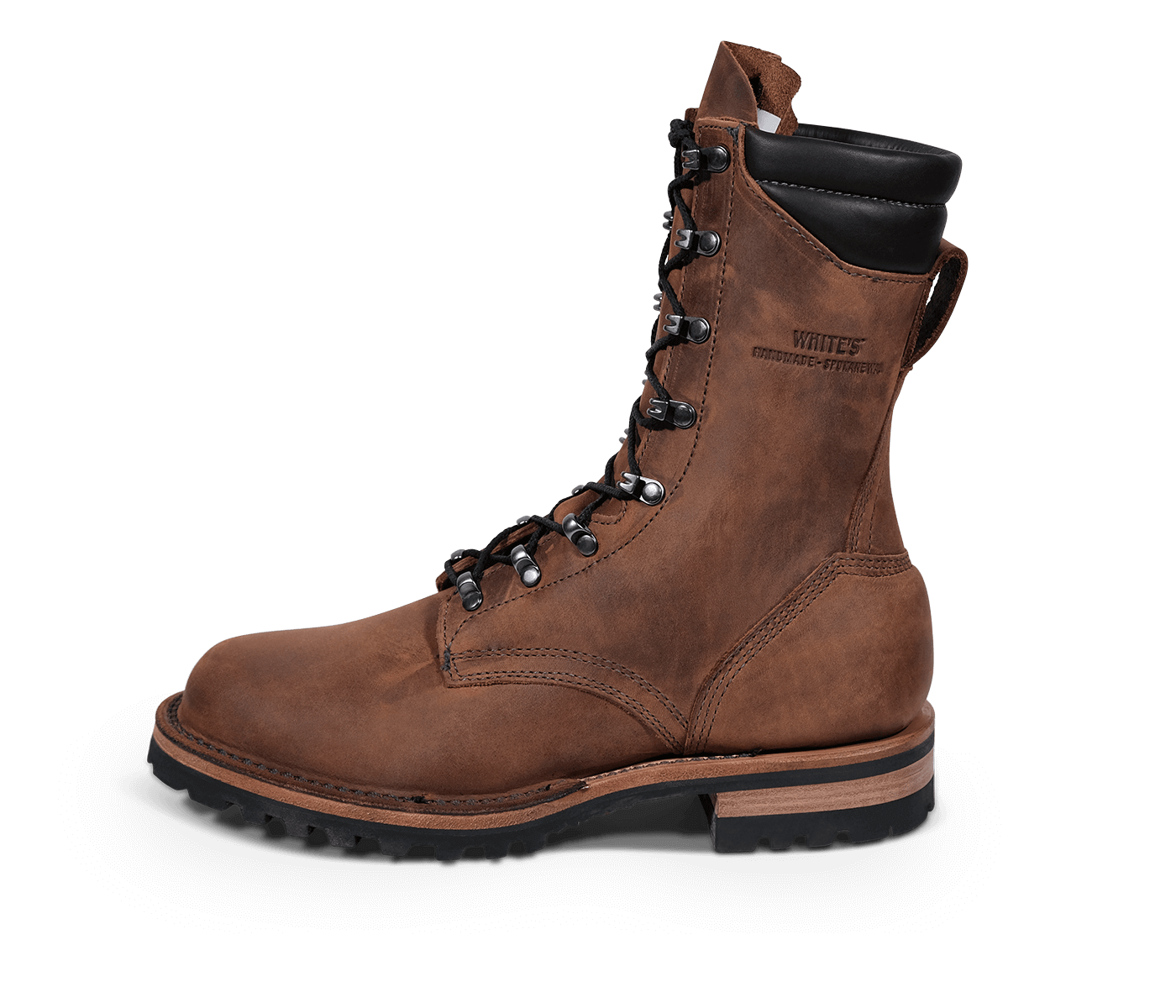 Our stitchdown construction type offers a more secure fit and feel than a Goodyear Welted boot, but takes much less time to manufacture than our true hand-sewn stitchdowns. Still hand-lasted and hand-bottomed, the liner of our stitchdown boots is glued down to the bottom of the insole. Then the vamp is turned out, and the midsole and bottom are machine-stitched together through the vamp. Removing the hand-welting process shortens the production time significantly, allowing us to offer a rugged, comfortable boot without the high price of a truly hand-sewn boot.