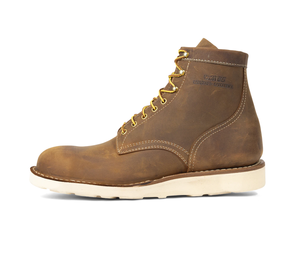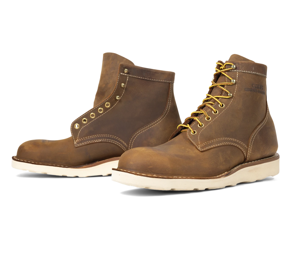 Our stitchdown construction type offers a more secure fit and feel than a Goodyear Welted boot, but takes much less time to manufacture than our true hand-sewn stitchdowns. Still hand-lasted and hand-bottomed, the liner of our stitchdown boots is glued down to the bottom of the insole. Then the vamp is turned out, and the midsole and bottom are machine-stitched together through the vamp. Removing the hand-welting process shortens the production time significantly, allowing us to offer a rugged, comfortable boot without the high price of a truly hand-sewn boot.
