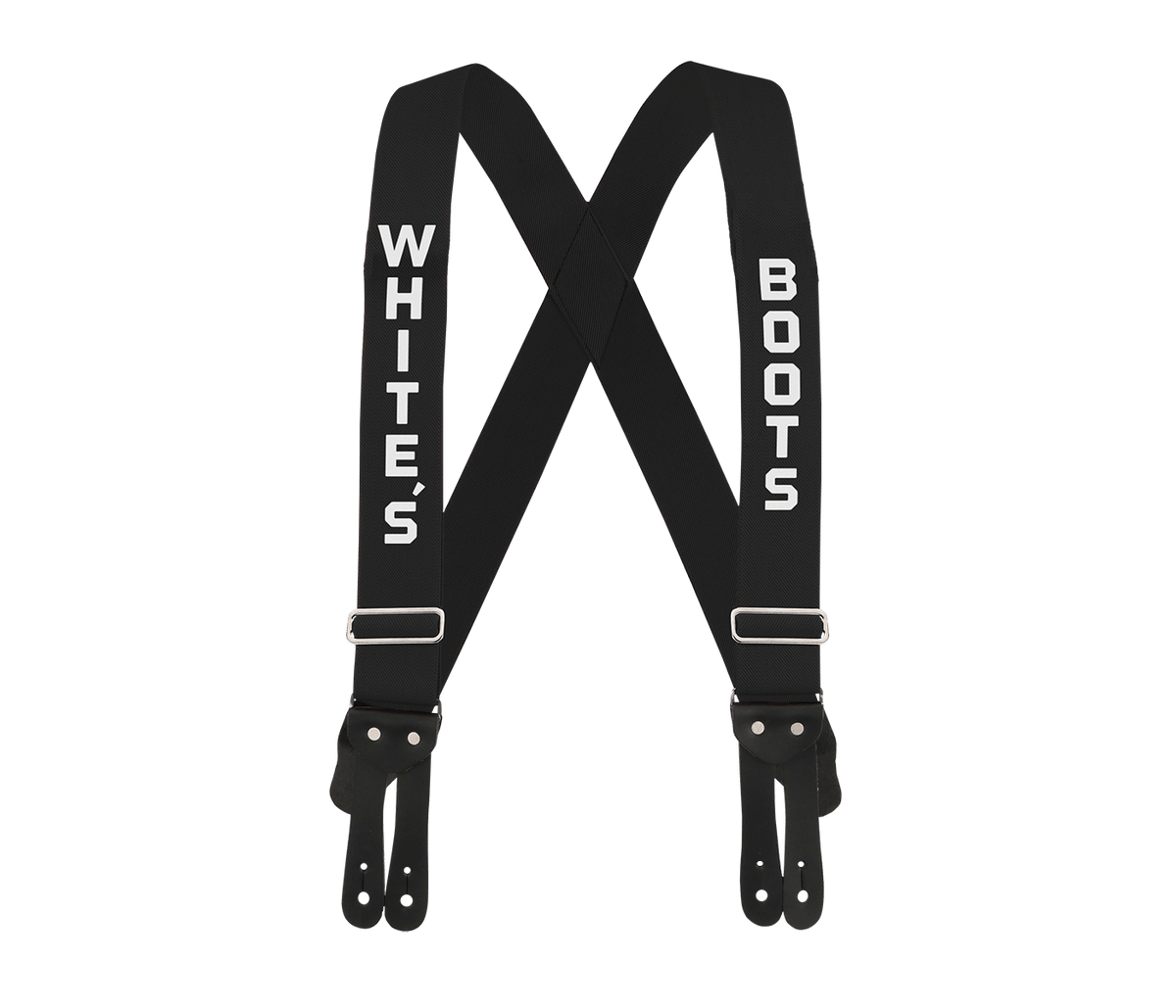Suspender length is measured starting from the top of the pants at the front suspender attachment position, diagonally over the opposite shoulder to the back attachment position.