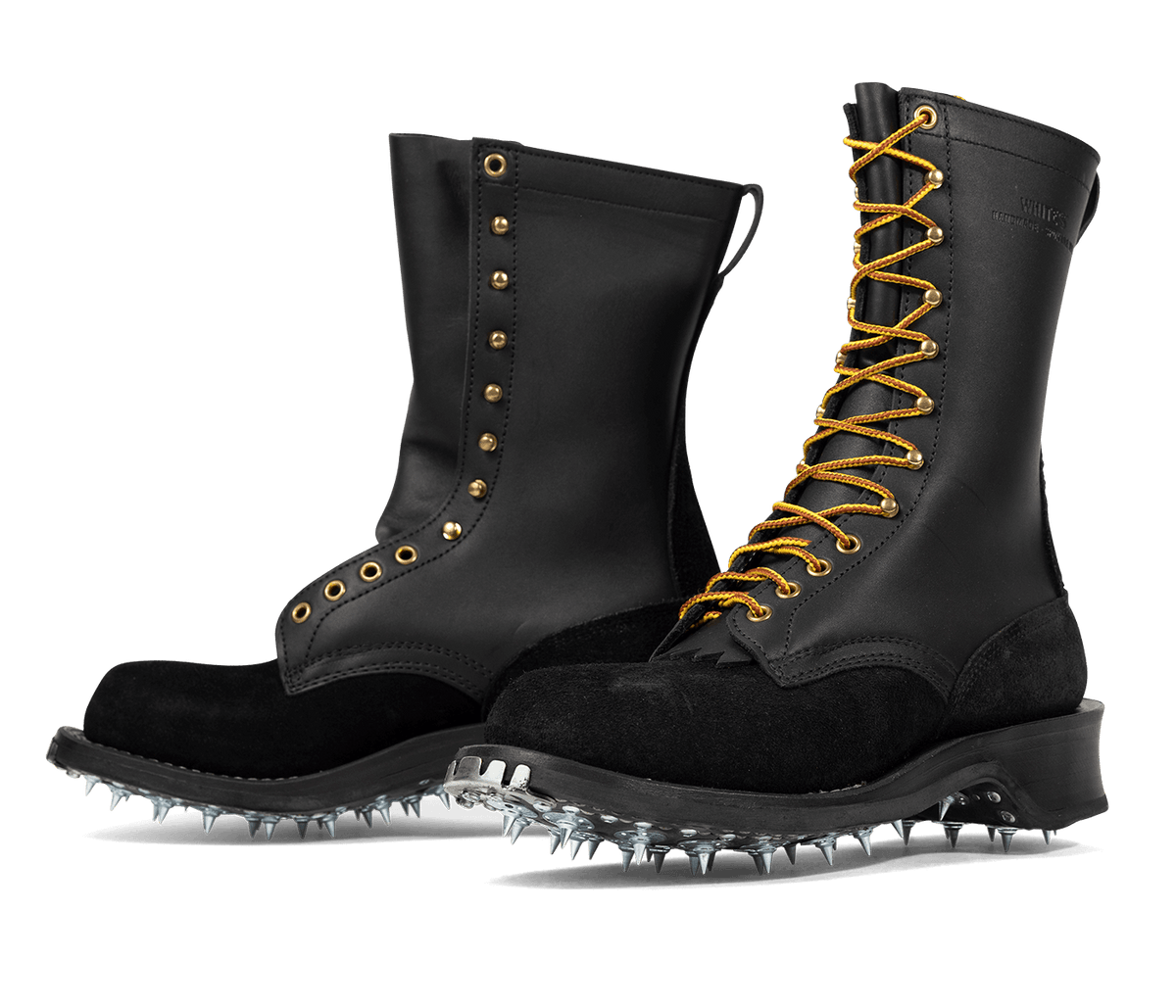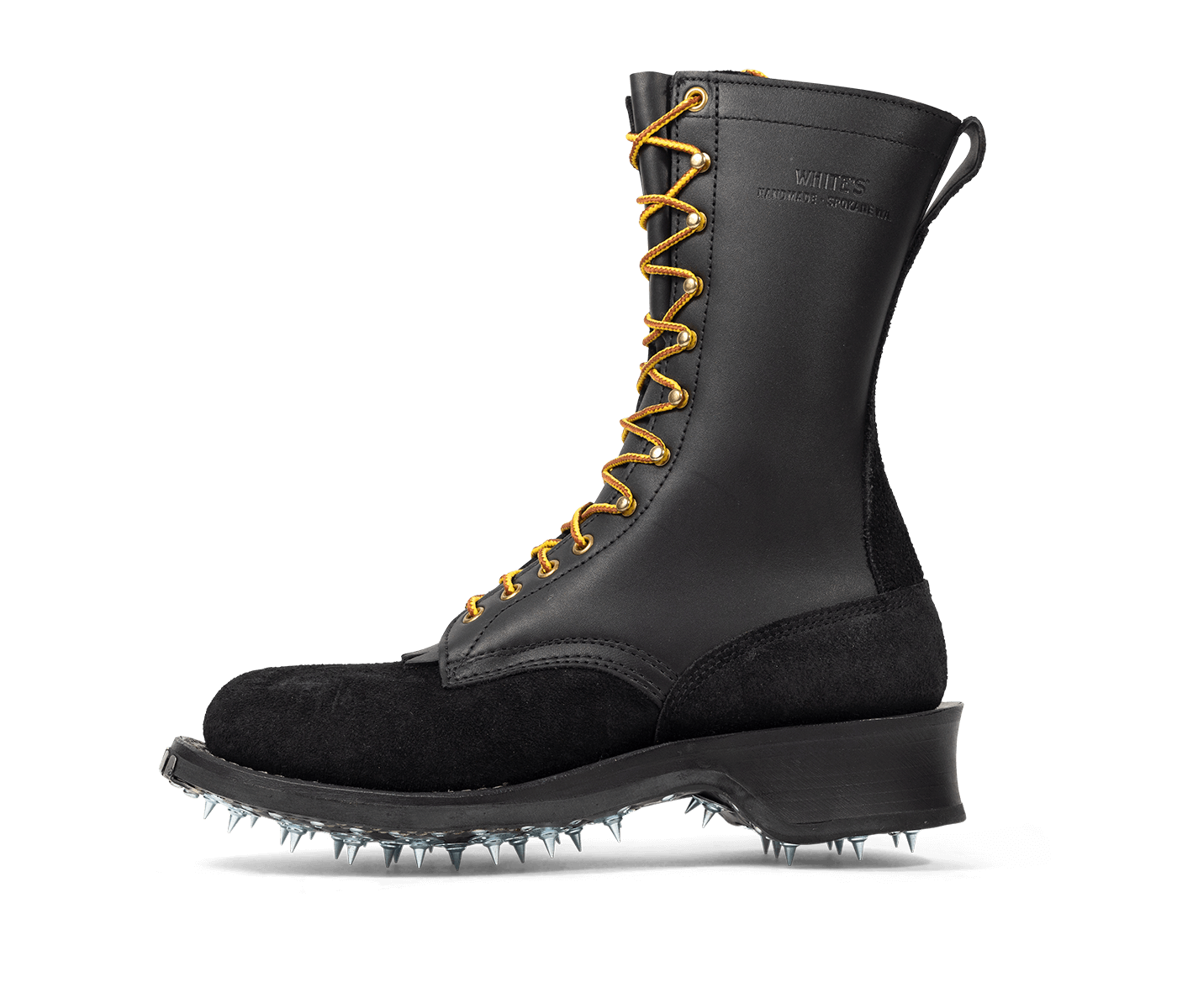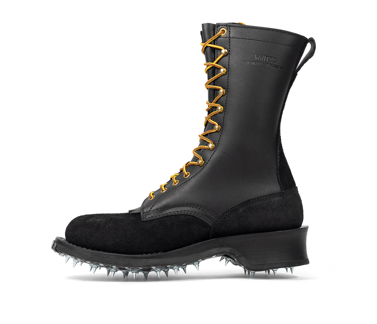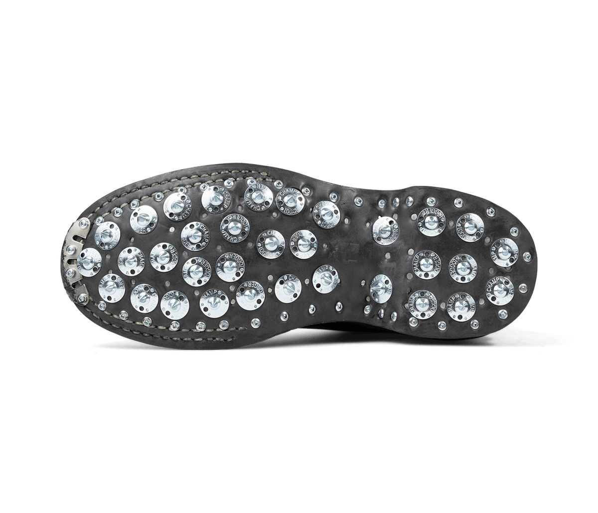 Nail Bottom is a construction type traditionally used in producing calked logging boots and lineman boots - White’s has been using it since the beginning. When bottoming the boot, the bootmaker folds the vamp under the last, instead of outward, securing it in place with nails.