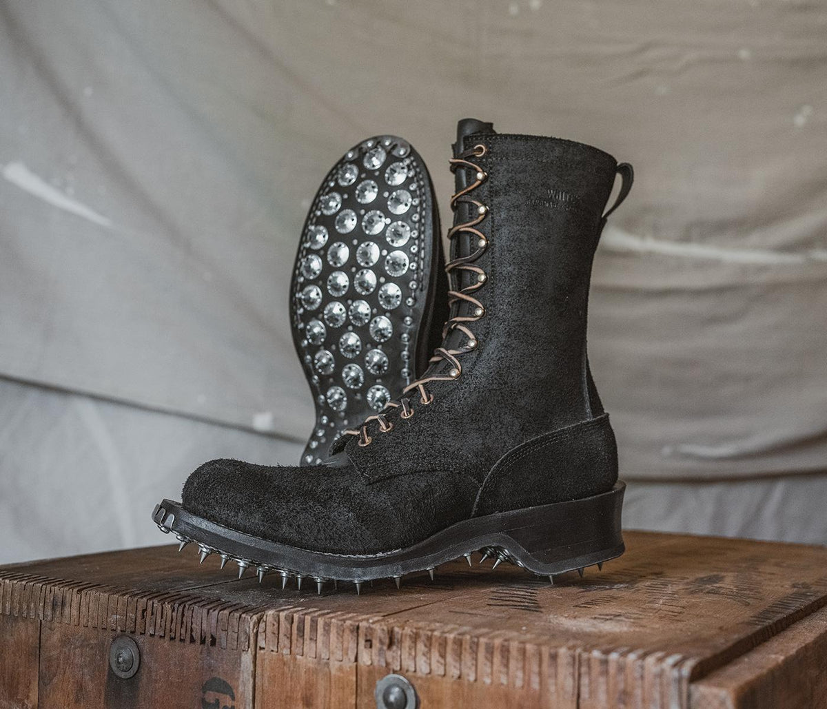 Nail Bottom is a construction type traditionally used in producing calked logging boots and lineman boots - White’s has been using it since the beginning. When bottoming the boot, the bootmaker folds the vamp under the last, instead of outward, securing it in place with nails.
