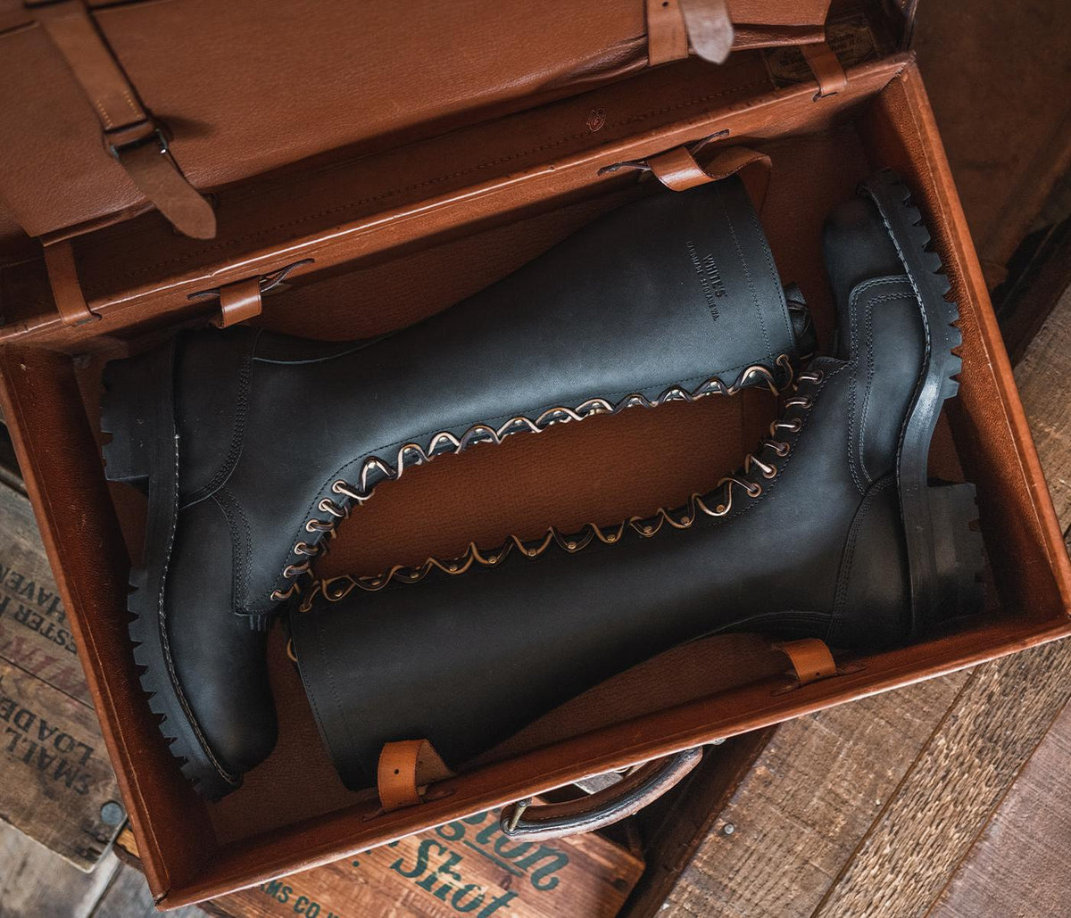 Nail Bottom is a construction type traditionally used in producing calked logging boots and lineman boots - White’s has been using it since the beginning. When bottoming the boot, the bootmaker folds the vamp under the last, instead of outward, securing it in place with nails.