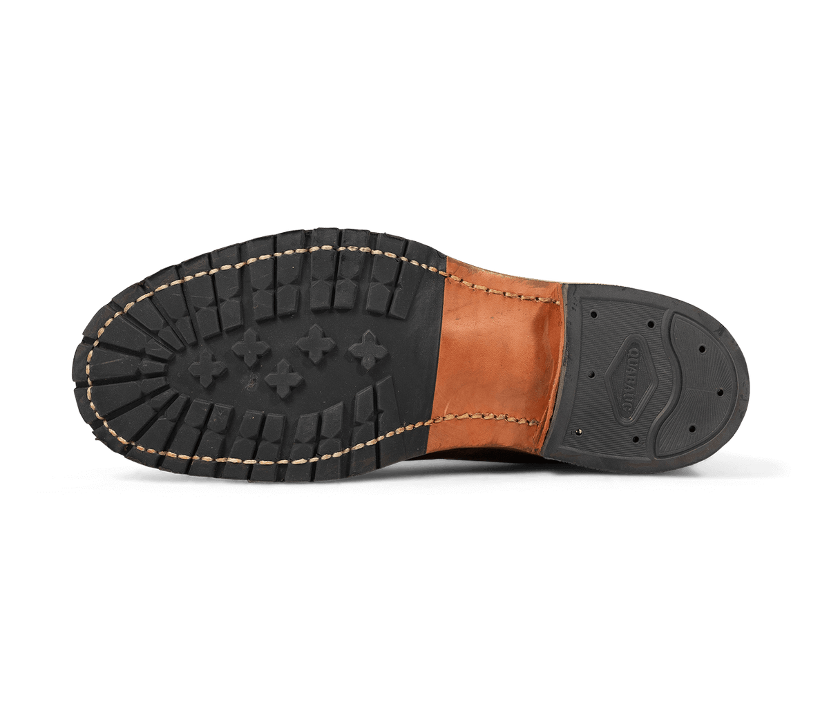 Our stitchdown construction type offers a more secure fit and feel than a Goodyear Welted boot, but takes much less time to manufacture than our true hand-sewn stitchdowns. Still hand-lasted and hand-bottomed, the liner of our stitchdown boots is glued down to the bottom of the insole. Then the vamp is turned out, and the midsole and bottom are machine-stitched together through the vamp. Removing the hand-welting process shortens the production time significantly, allowing us to offer a rugged, comfortable boot without the high price of a truly hand-sewn boot.