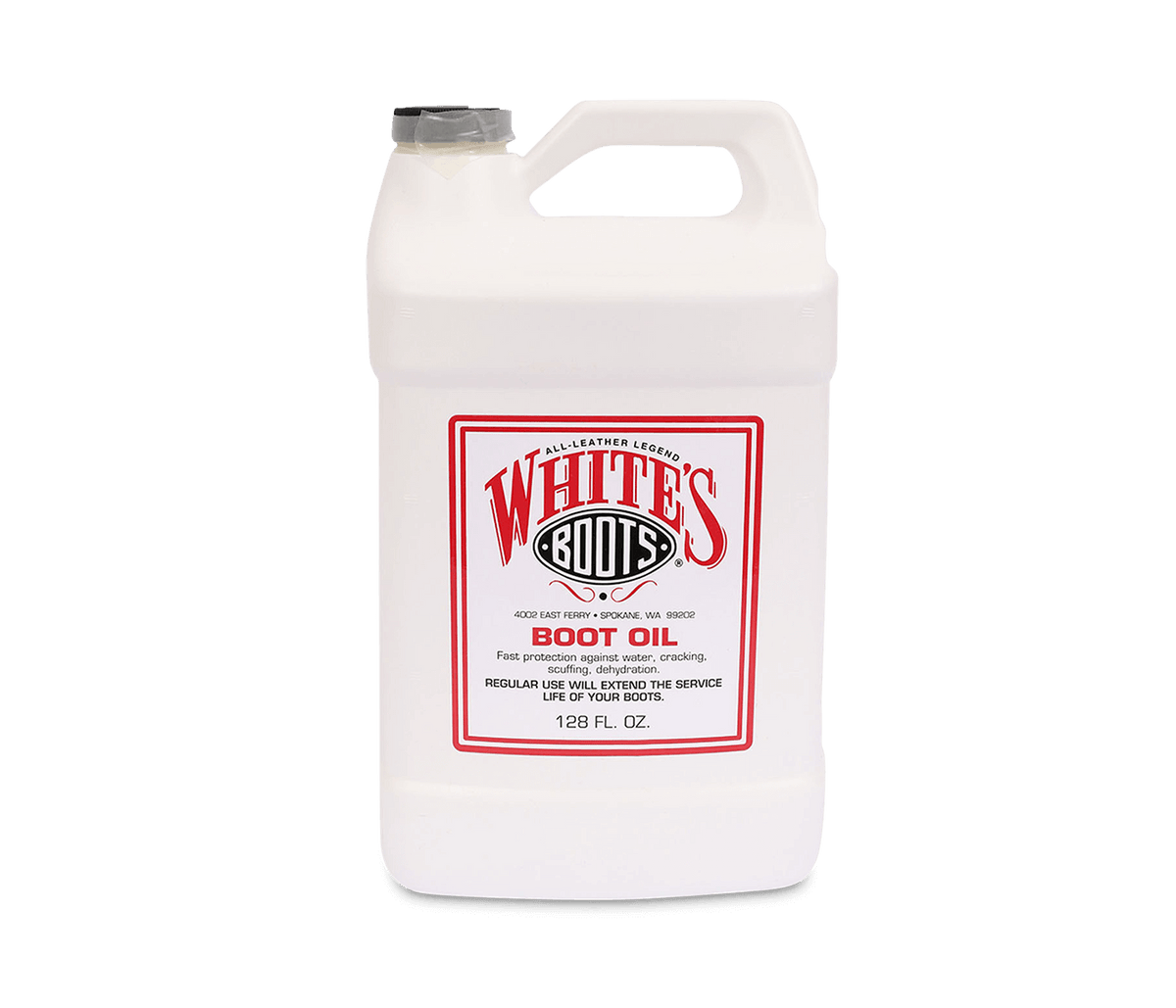 Use White's Boot Oil for leather boot care and preservation. White's boot oil is 100% natural. It preserves and protects against moisture, mildew, bacteria and salt. It will not soften leather or rot stitching.