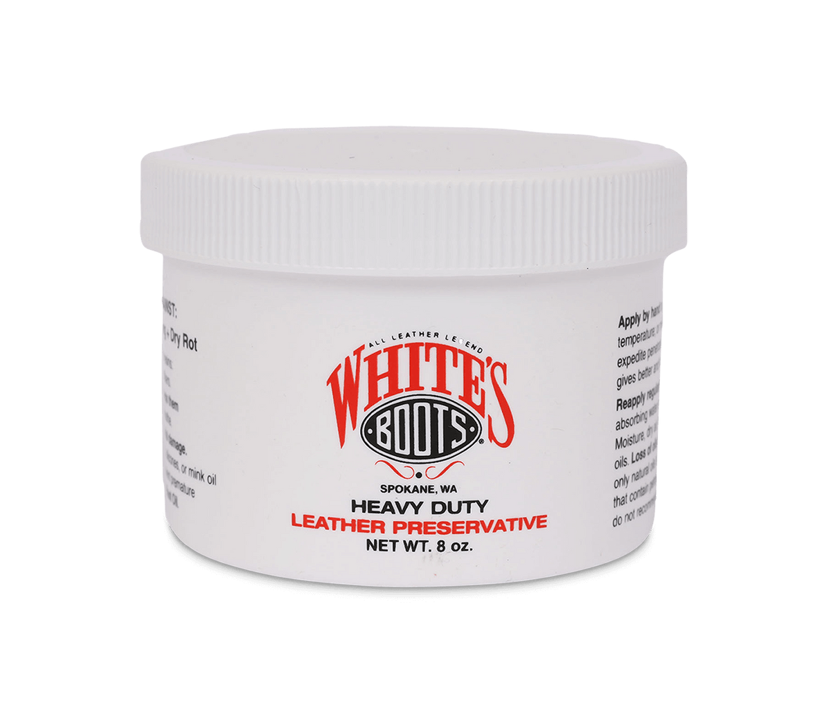 White's Leather Preservative is 100% natural and the most durable protection available. Originally developed for the severe conditions endured by wild-land firefighters, this leather preservative protects, preserves, and restores boots, saddles, motorcycle leathers, tool pouches, baseball gloves, and more.